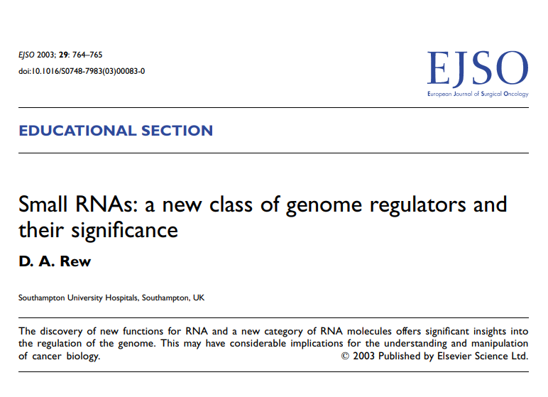 Rew, D. A., 2003, In: European Journal of Surgical Oncology. 29, 9, p. 764-765