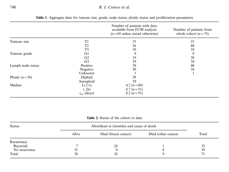 Key words: breast cancer; bromodeoxyuridine; recurrence; outcome.