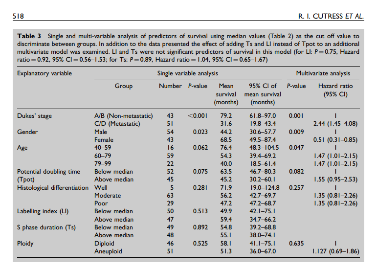 Key words: colonic cancer; rectal cancer; bromodeoxyuridine; cell proliferation; outcome.