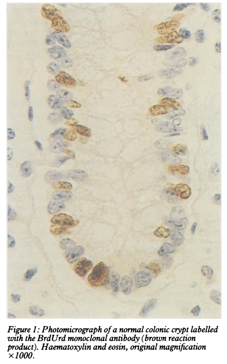Measurement of in vivo proliferation in human colorectal mucosa using bromodeoxyuridine