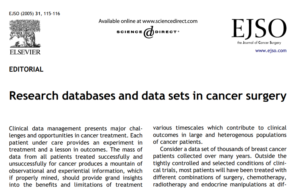 Research databases and data sets in cancer surgery