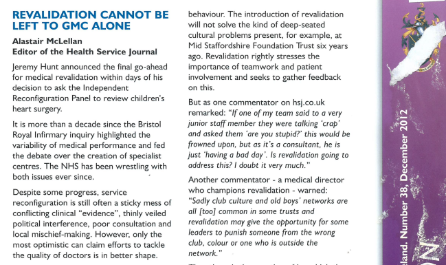 Revalidation cannot be left to the GMC alone. Commentary. JASGBI 2012 - 38