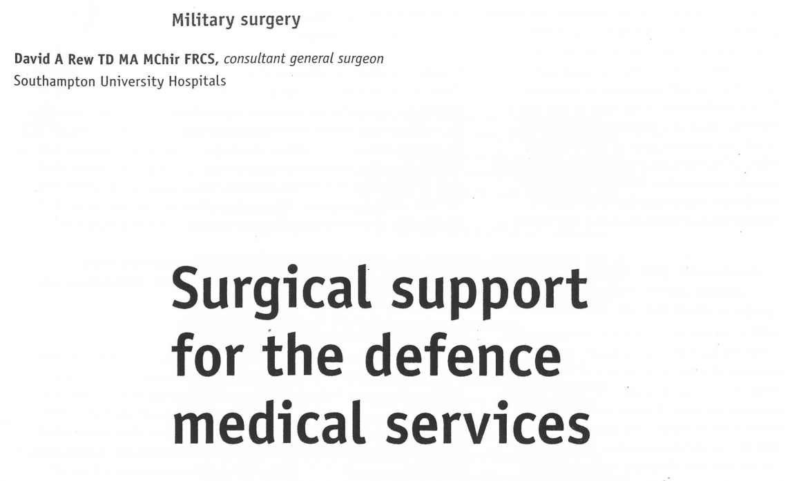 David A Rew TD MA MChir FRCS, consultant general surgeon