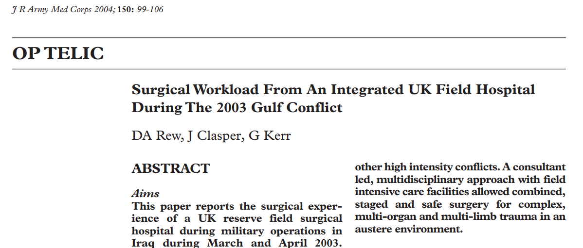 Surgical Workload From An Integrated UK Field Hospital During The 2003 Gulf Conflict