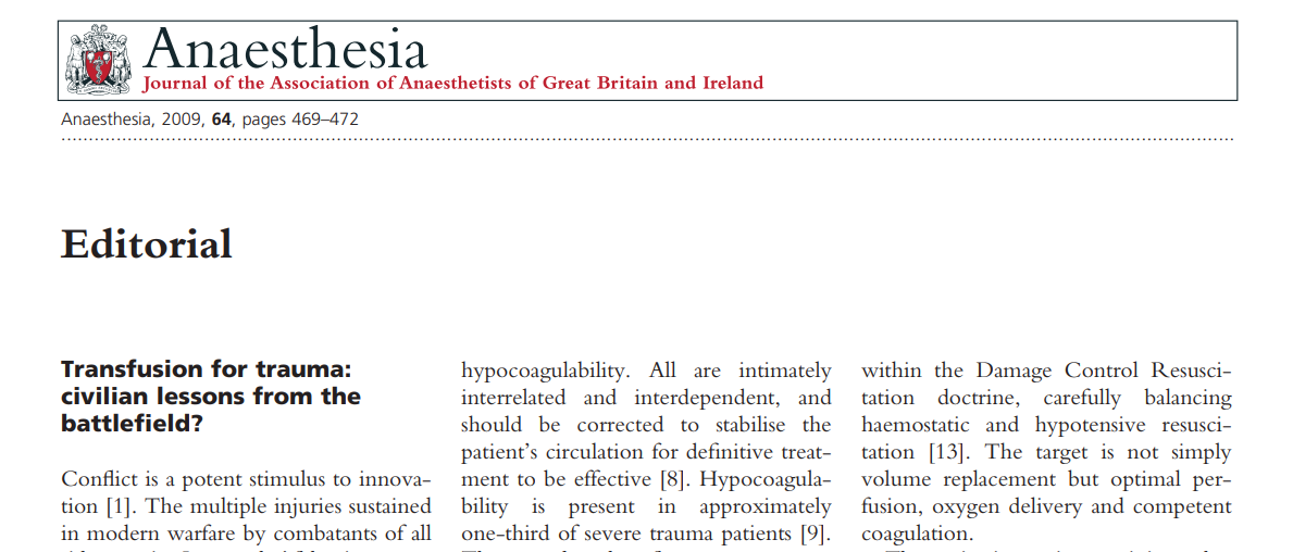 Transfusion for trauma: civilian lessons from the battlefield?