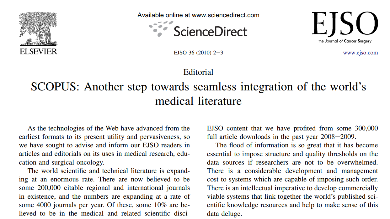 SCOPUS: Another step towards seamless integration of the world’s medical literature